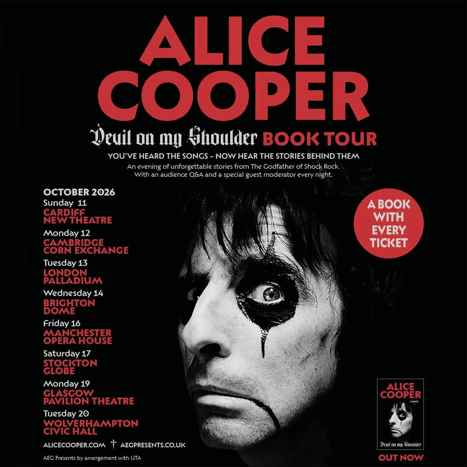 Building on over sixty years of rock folklore, Cooper will support the book’s launch with an intimate 8-date UK speaking tour. Each evening will feature the Rock and Roll Hall of Fame inductee in conversation with a special guest moderator, followed by an audience Q&A, offering fans a rare glimpse behind the greasepaint and guillotines.